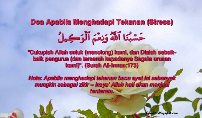 ... anda sedang stress?. Nilaikanlah kebenaran dan keberkesanannya berdasarkan ilmu yang sedia ada pada diri masing-masing. Umat Islam berusaha dan berdoa mohon pertolongan, perlindungan Allah S.W.T.. jua. In Syaa Allah.